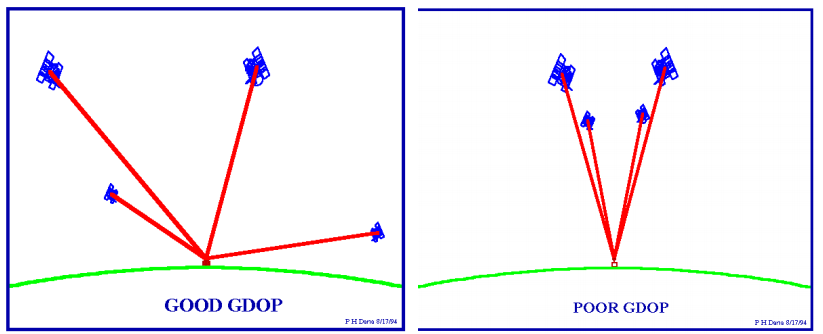 - Good DOP: satellites are spread across the sky