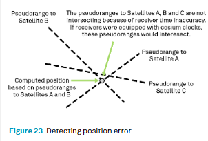 - The receiver time inaccuracy causes range errors that result in position errors. The receiver knows there is an error: it just doesn’t know the size of the error. If we now compute the range to a third satellite, it doesn’t intersect the computed position