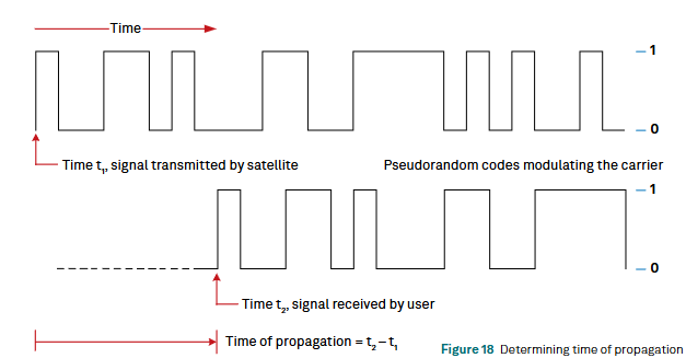 - The receiver tracks signals using PRN codes, which allow it to calculate the time of propagation by comparing the received signal with the satellite’s transmission time