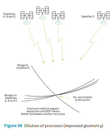 - If DOP is very high, the inaccuracy of the computed position will be much larger than the inaccuracy of the range measurement