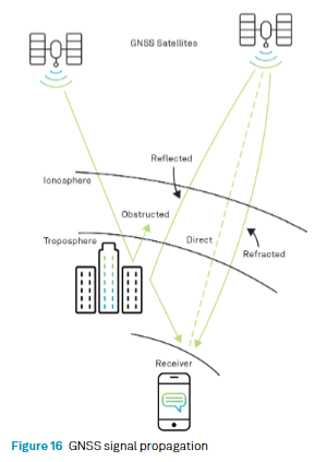 - To obtain accurate position and time, we need to know the length of the direct path from the satellite to the user equipment (which we refer to as the “range” to the satellite). Radio waves do not travel in a straight path