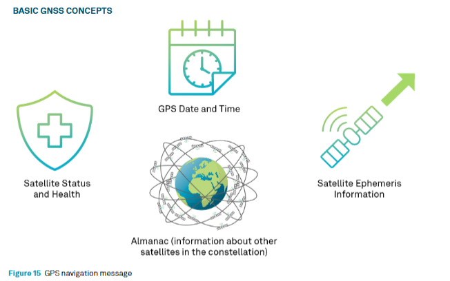- Satellite ephemeris data -> allows the receiver to calculate the satellite’s position