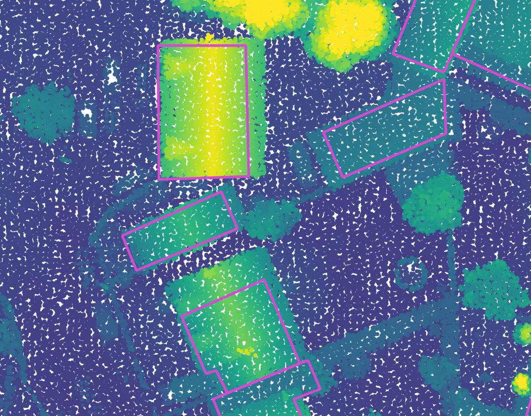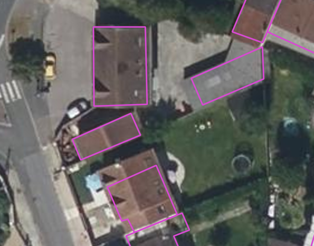 There are a few interesting attributes, including the source of the polygon, which can be either aerial imagery or cadastre (terrain measures) with a horizontal precision of respectively 2.5 m and 3 m, and a vertical precision of respectively 1.5 m and 2.5 m