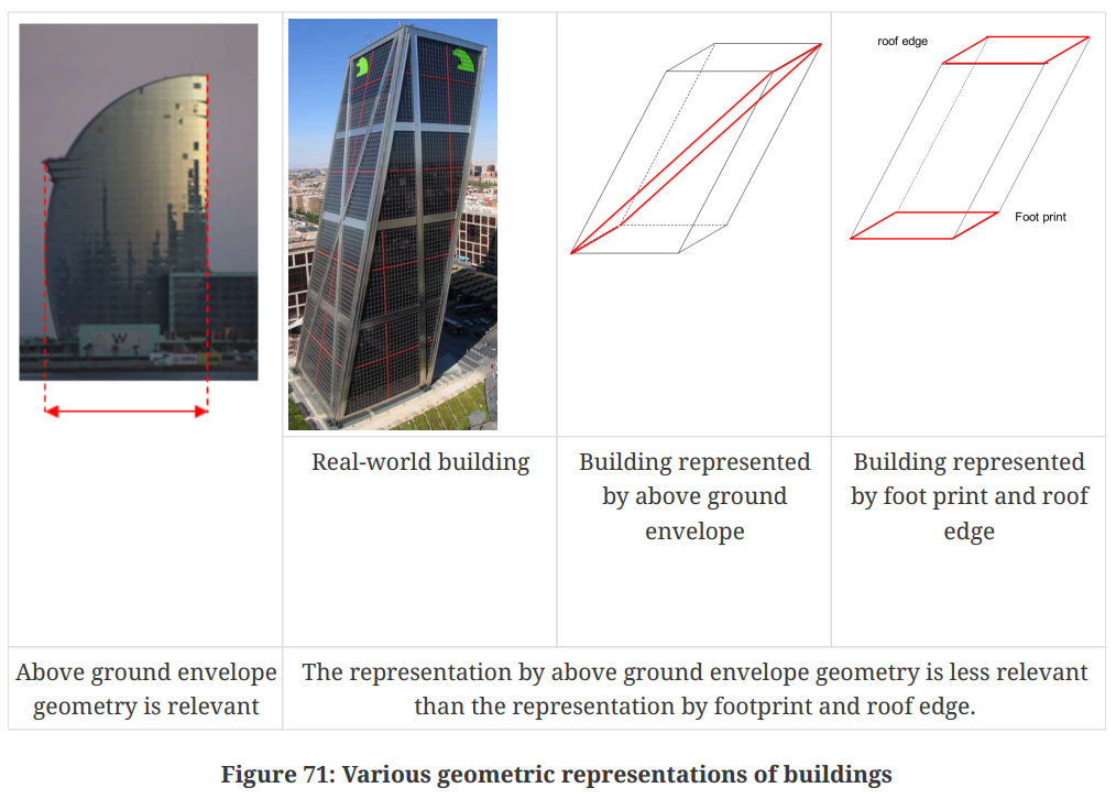 - The definition of the footprints and roofprints is indeed a difficult topic, especially because most buildings are similar but there will always be exceptions that will break some definitions. For this reason, since the main goal in my case is to be able to add details to some of the buildings with roof overhangs, my definition of footprints and roofprints should be coherent with the way the buildings should be modelled based on them. More specifically, the idea behind footprints is that they can be extruded vertically up to the roof, and in combination with the roofprint and roof planes, we can get an LoD 2.3 model of the building. Therefore, I should define footprints as the vertical projection of the main façades of the building. The idea of main façade still needs to be refined and specifically defined, but this captures the idea of what I hope to be able to achieve with the planned methodology.