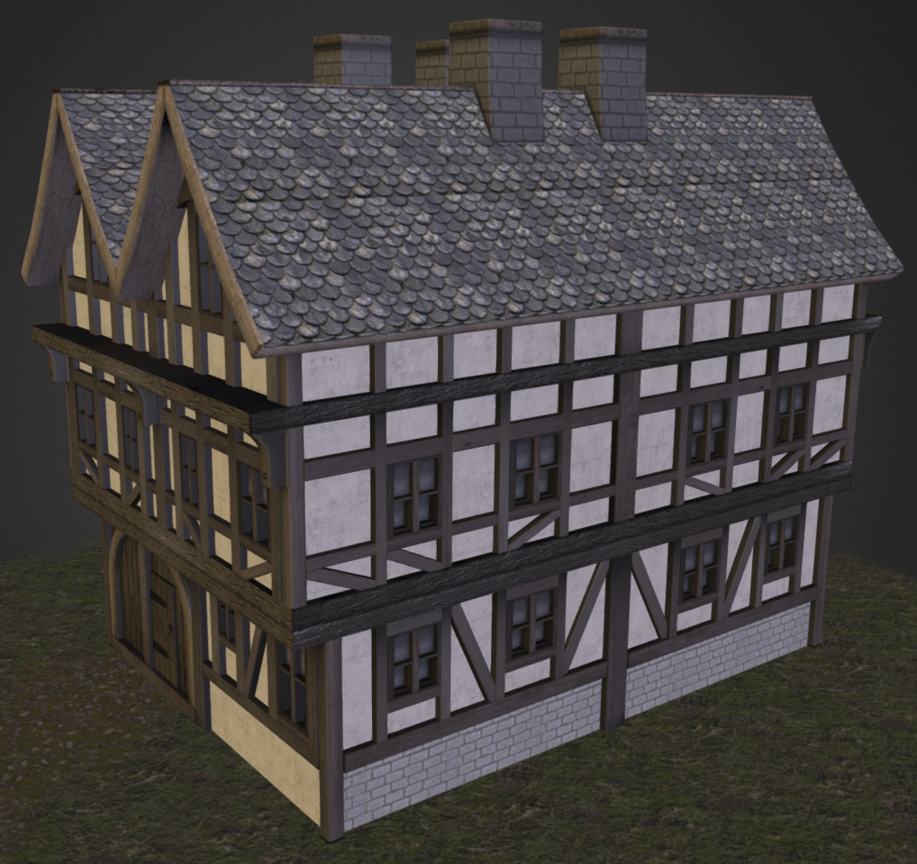 The shape of the outline is taken from the ground. The polygon is flattened, i.e. each point of the unified building is assigned the same roof height (like a ‘shoebox’).